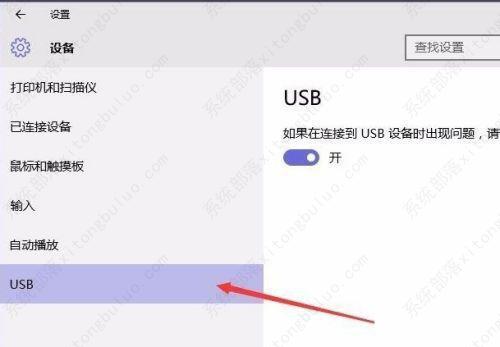 3、在设置设备USB中关闭目前唯一的选项如果在连接到USB设备时出现问题,请通知我。进入系统点击开始菜打开设置。