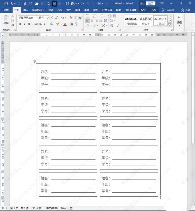 这样,整个表格的各个单元格之间就出现了空白。后续将其打印出来,沿着外框线裁剪,就得到了一个个带有边框的标签了。
