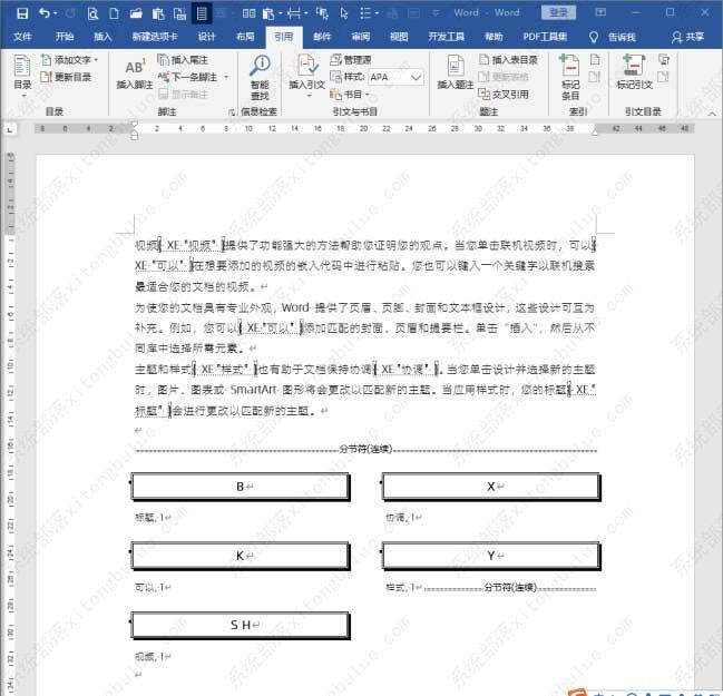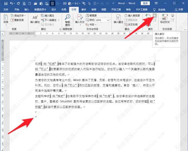 表格创建完成后,保存关闭,然后进入到主文档中。在新的段落点击【插入索引】。