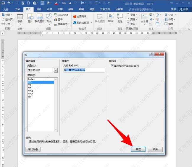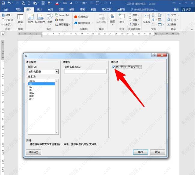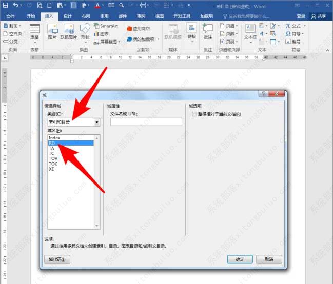 在打开的【域】设置窗口中,类别选择【索引和目录】,再选择其中的RD域。