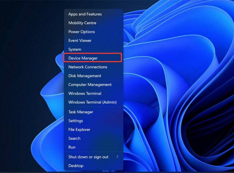 右键单击 开始 图标,然后单击 设备管理器 将其打开。