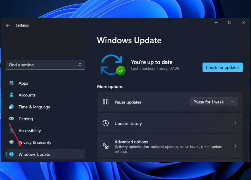 按 Windows + I 打开 设置 应用程序,然后单击左侧面板中的 Windows 更新 。