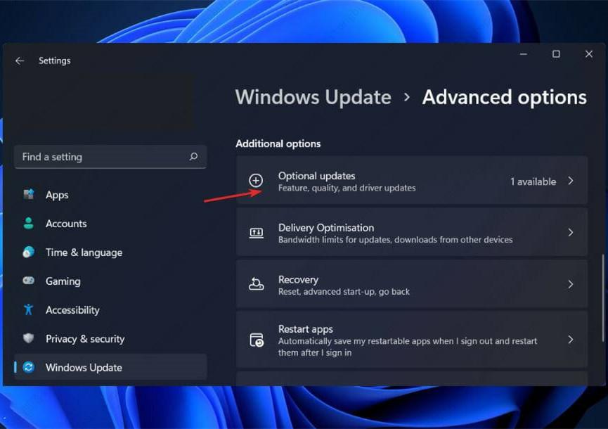 向下滚动,直到找到Additional options部分,然后单击Optional updates。