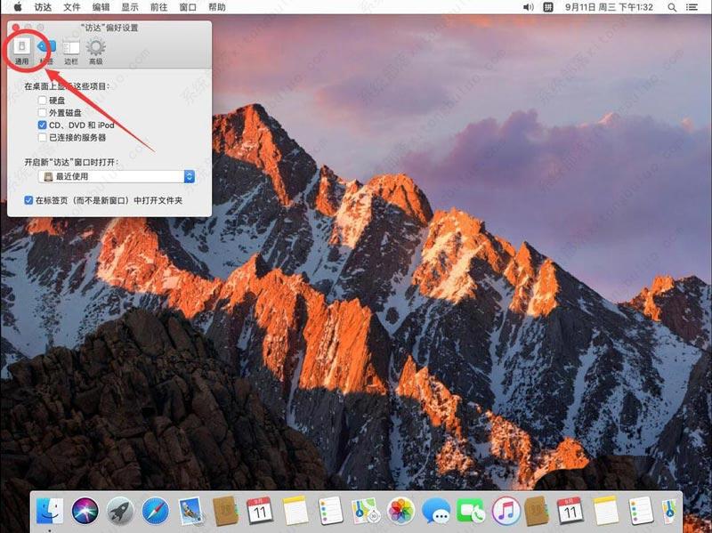 3、打开访达偏好设置后,点击上面的“通用”标签。