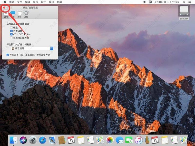 6、点击左上角的红色叉号,关闭访达设置即可。