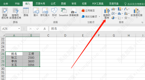 1、选中需要插入折线图的数据,点击菜单栏中的插入。