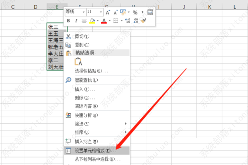 2、单击鼠标右键,在下拉菜单中选择单元格格式。