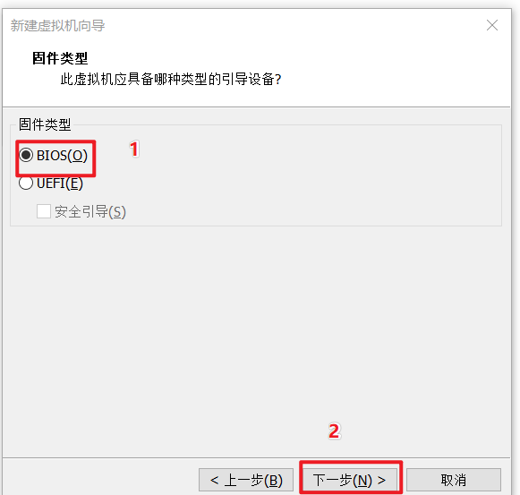 7、选择固件类型,一般重装 Windows 10,使用 Bios 或者 UEFI 都可以。