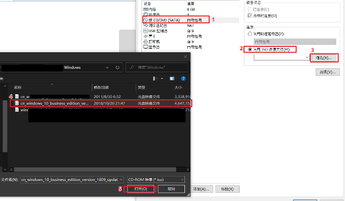 17、在自定义硬件中选择使用 ISO 镜像,浏览到您下载的 Win10 官方原版镜像。