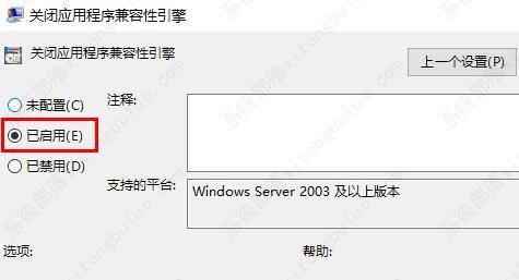 3、进入后点击“应用程序兼容性”在右侧选择“关闭应用程序兼容性引擎”。