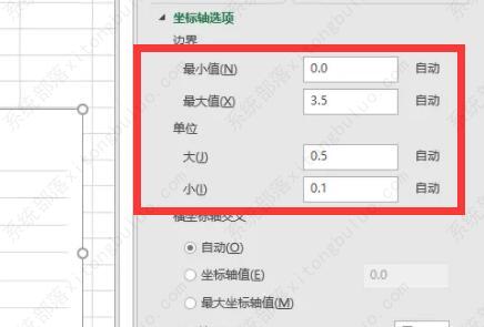 4、除了数据外,还可以修改交叉、显示单位、对数刻度等选项。