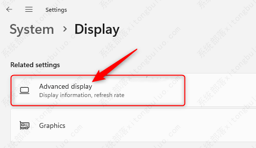 第 3 步,在系统显示页面上,向下滚动到相关设置部分并单击高级显示。