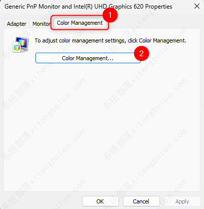 第 5 步,在显示适配器属性窗口中,转到颜色管理选项卡。