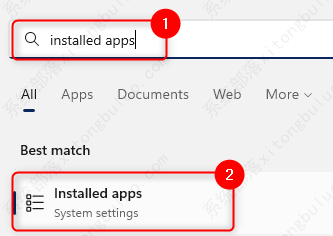 第 1 步,点击键盘上的Windows键并在 Windows 搜索栏中键入已安装的应用程序。