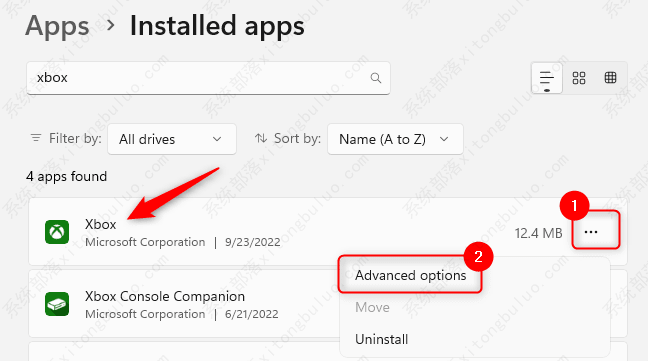 第 4 步,单击与应用程序关联的三点菜单,然后选择高级选项。
