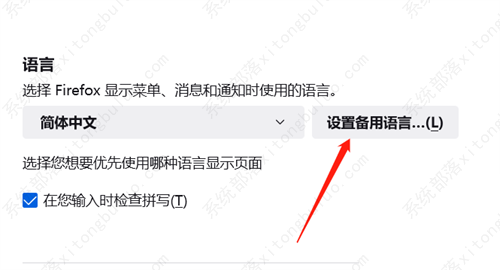 4、接着向下滑动找到语言,点击【设置备用语言】;