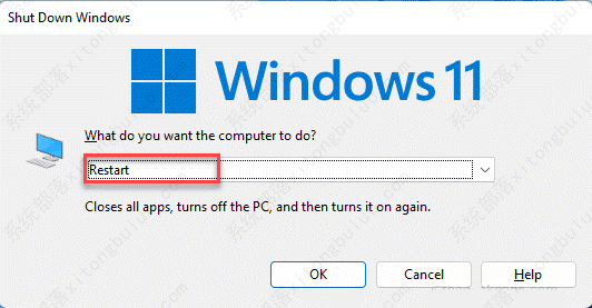 然后,按Alt+F4键并重新启动计算机。