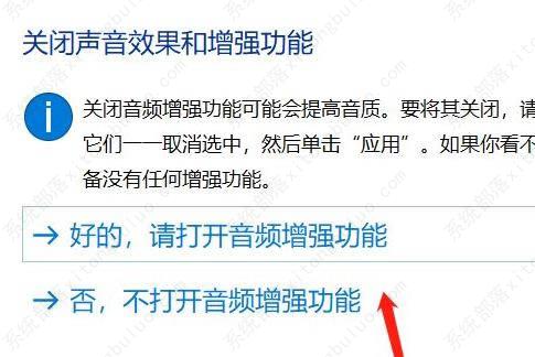 3、然后会弹出关闭声音增强功能窗口,可以根据喜好来选择。