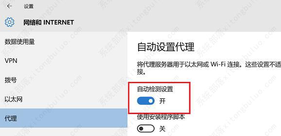 4、最后将右侧中间的“自动检测设置”下面的开关打开即可。
