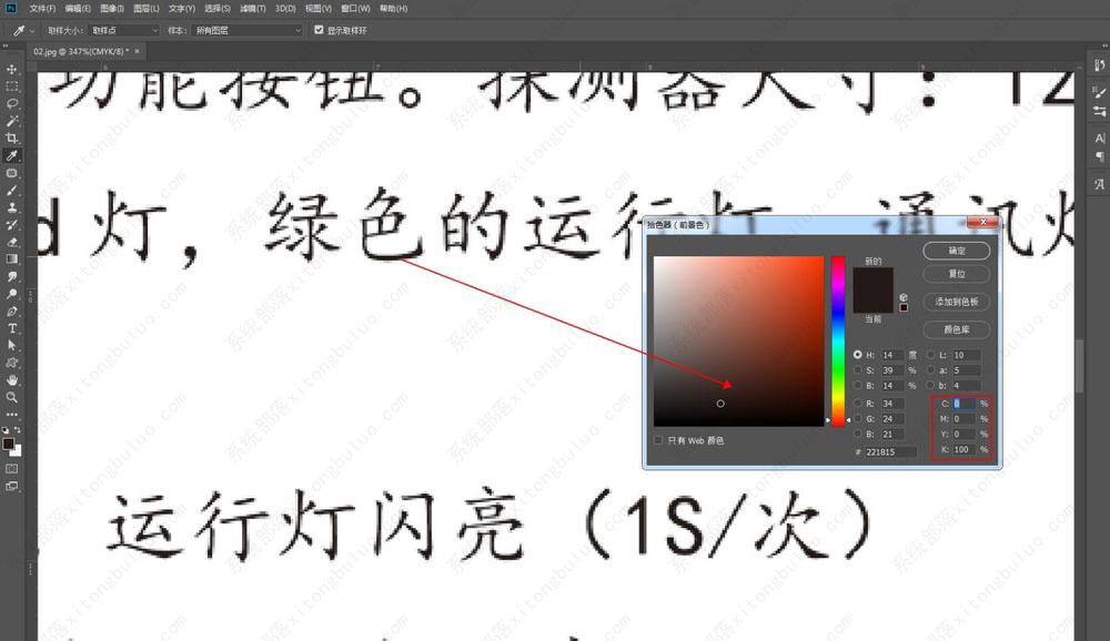 确定后,按CTRL+D取消选区,用吸管工具吸取字的颜色即可看到已经变成了单色黑,按CTRL+S保存即可。