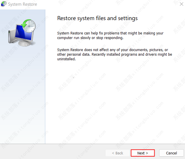 第 4 步:在“系统还原”窗口中,单击“下一步”。