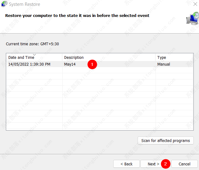 第 5 步:现在,单击还原点,然后单击下一步按钮。