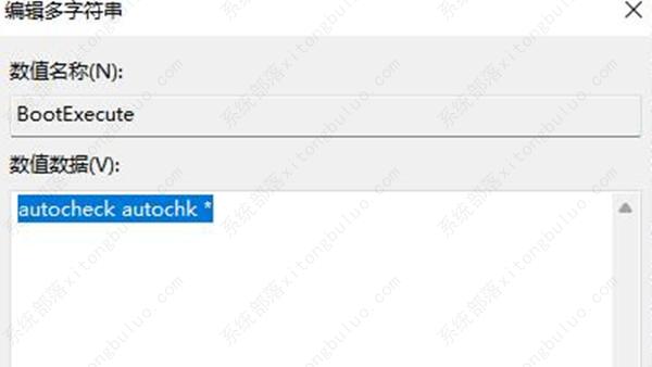 3、双击右侧中的“bootexecute”文件。