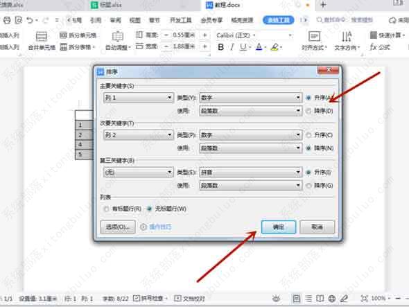 第二步:设置好排序关键字后,选择需要升序排列还是降序排列即可。