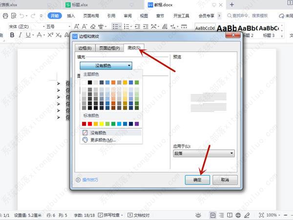 2、点击底纹后,选择需要的底纹颜色,点击确定即可。