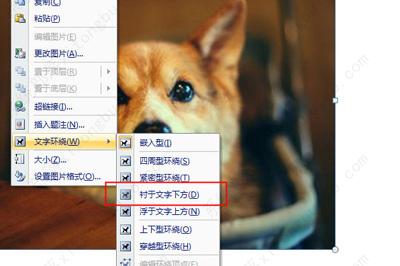 2、接着我们将图片插入到表格的下方,并设置图片环绕类型为为【衬于文字下方】。