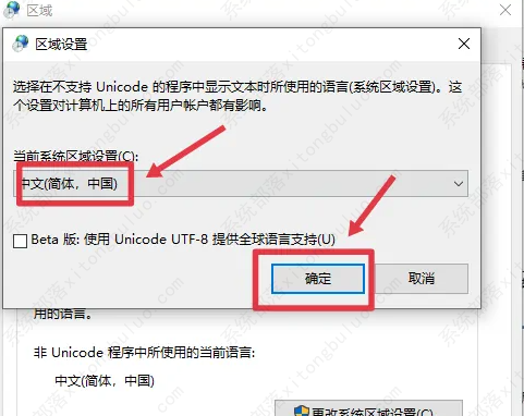 5、区域设置为“中文(简体,中国)”,然后点击“确定”。