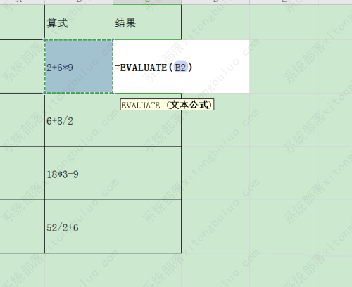 1、遇到如下图表格中的计算式如何计算呢?首先输入EVA函数。