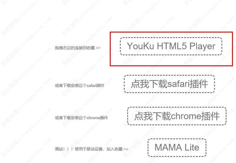 5、找到YouKu HTML5 Player将其拖入收藏夹。