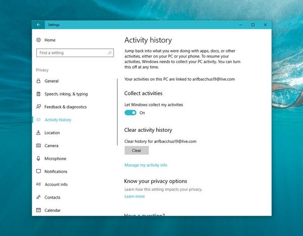 正如上方截图所示,用户能够关闭这些选项,或者对活动历史进行清理。不过需要注意的是,目前微软官方仍未放出Windows Timeline功能的用户界面元素,不过鉴于设置界面的上线,相信该功能已经接近于尾声,应该会在近期上线。