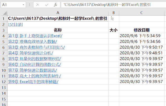 =HYPERLINK($A$1&A4,A4)PS:A1 锁定后,和「名称」下方的数据连接起来,就是文件夹完整路径。
