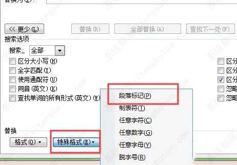 点击“特殊格式”,下拉菜单内点击“段落标记”。