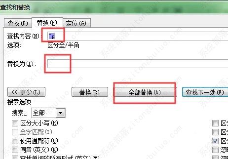 这时可以在查找内容内添加一个段落标记,替换为内什么也不填写,点击“全部替换”。