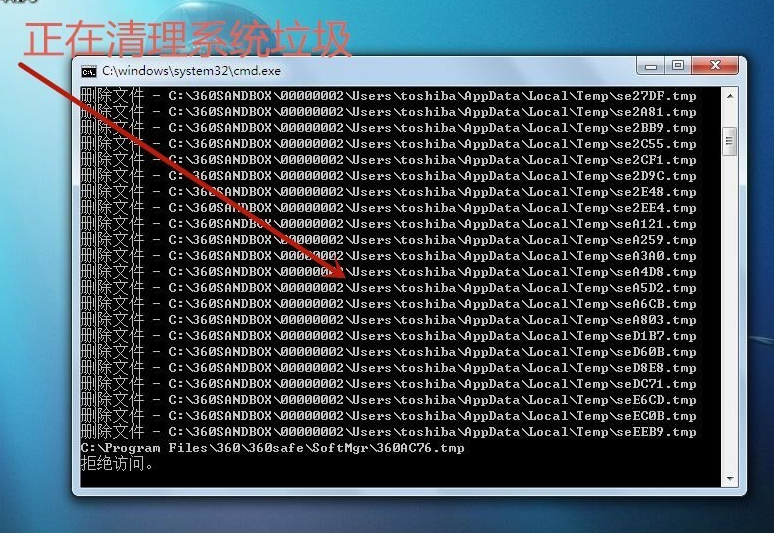 需要清除垃圾时,双击运行该文件,就会弹出一下窗口,显示正在清理系统垃圾,请稍等。。。,那就表示正在运行中。