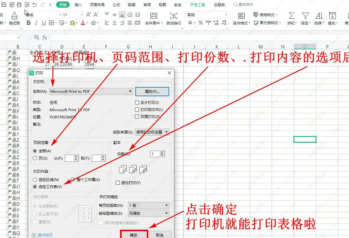 在“打印”的弹出框中,根据需要进行设置后,点击“确定”即可。