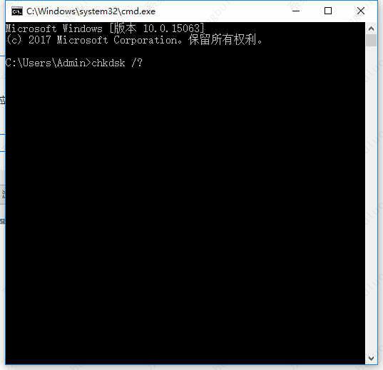 1、win+R键打开运行,输入cmd,在出现的界面输入“chkdsk /?”;