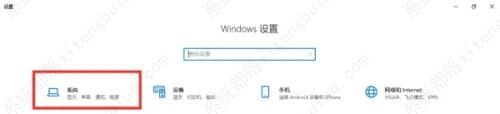 Windows 设置窗口中,搜索框可以查找设置,也可以直接点击系统。