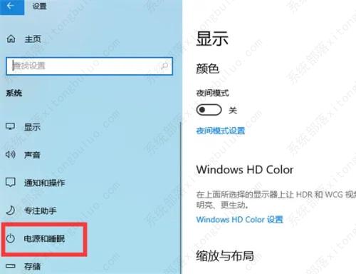 系统主页设置窗口中,点击左侧的电源和睡眠。