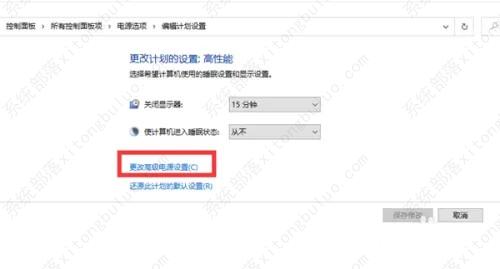 更改计划的设置:高性能下,点击更改高级电源设置。
