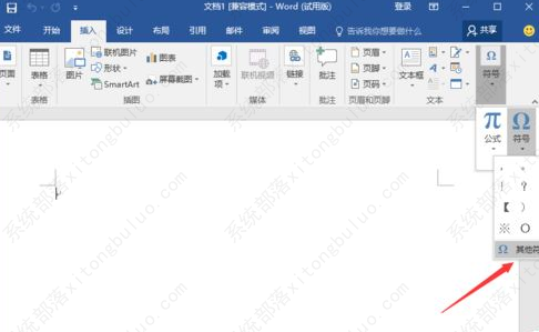 3、在插入选项卡的“符号”分区功能区中,依次点击“符号”-->“其他符号”选项。