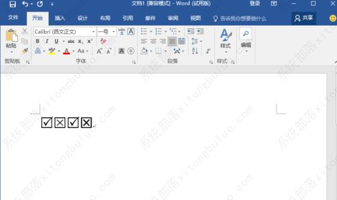 6、返回到Word文档编辑窗口,即可看到我们插入的带“打勾”或者“打叉”的小方框符号。