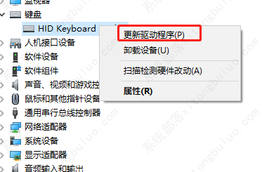 3、右键键盘的驱动程序,然后点击更新一下就可以了。