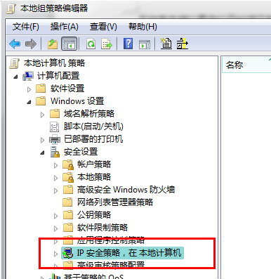 打开本地组策略编辑器后,依次展开“计算机配置---windows设置---安全设置---ip安全策略,在 本地计算机”