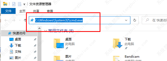 3、快捷键”win+E“进入文件资源管理器,在路径栏输入”C:WindowsSystem32cmd.exe“打开命令提示符窗口。