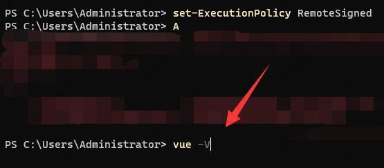 3、接着输入“A”回车和“vue -V”回车即可解决问题了。