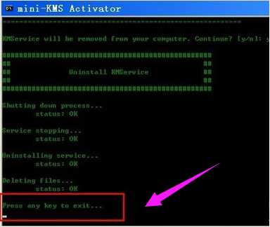 输入y,按回车,等待一会,出现“Prease any key to exit.。。”,就可以把当前的对话窗口关闭了。